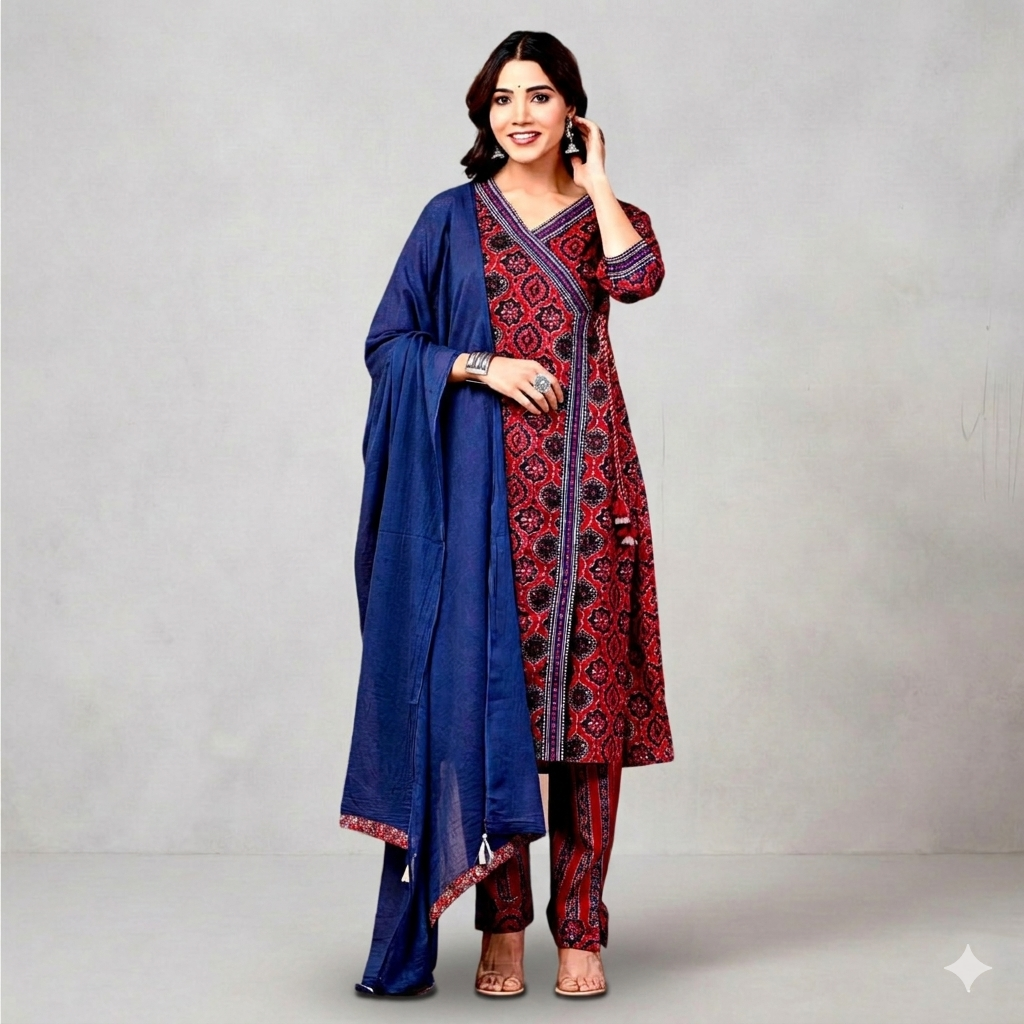 ✔ Authentic Ajrakh Print – A rare blend of tradition and contemporary fashion.